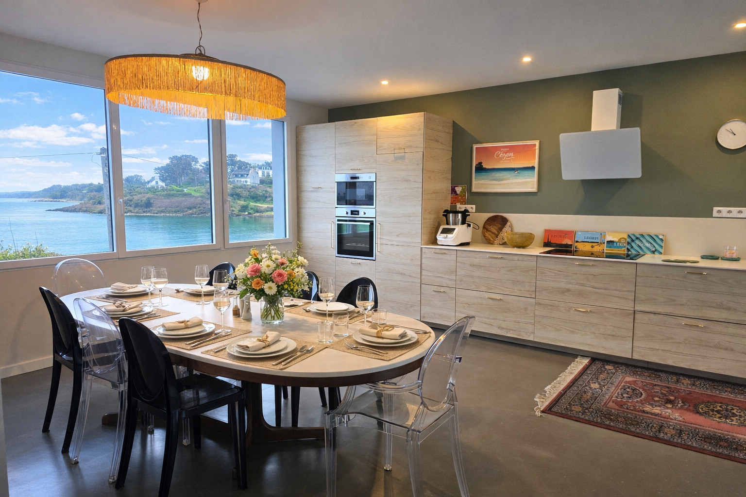 De villa in Landéda heeft 5 slaapkamer(s) en kan gereserveerd worden tot 10 personen. Deze smaakvol gemeubileerde woning is modern, De accommodatie heeft een oppervlakte van 150 m², en Uitzicht op zee en de tuin De woning ligt vlakbij het strand. Uw acommodatie ligt in een kindvriendelijke buurt en vlak aan zee. De woning bevindt zich op 400 m van het zandstrand "PLAGE DE LA BAIE DES ANGES", 2 km van het dorp "BOURG DE LANDEDA", 2 km van de supermarkt "SUPERMARCHE UTILE - LANDEDA", 25 km van de luchthaven "AEROPORT GUIPAVAS", 25 km "CLINIQUE DE KERAUDREN", 30 km van het treinstation "GARE DE BREST". Tevens heeft u de beschikking over Tuin, Tuinmeubilair, Omheind perceel, 20 m² terras, Wasmachine, Droger, Barbecue, Strijkijzer, Internet (wifi), Haardroger, Warmtepomp, Privé Zwembad, Openlucht parkeerplaats in het zelfde gebouw, 1 Televisie. De open keuken, met inductie kookplaat, is uitgerust met koelkast, magnetron, oven, vriezer, vaatwasmachine, servies/bestek, keukengerei, koffiezetapparaat, broodrooster, waterkoker en sapcentrifuge.