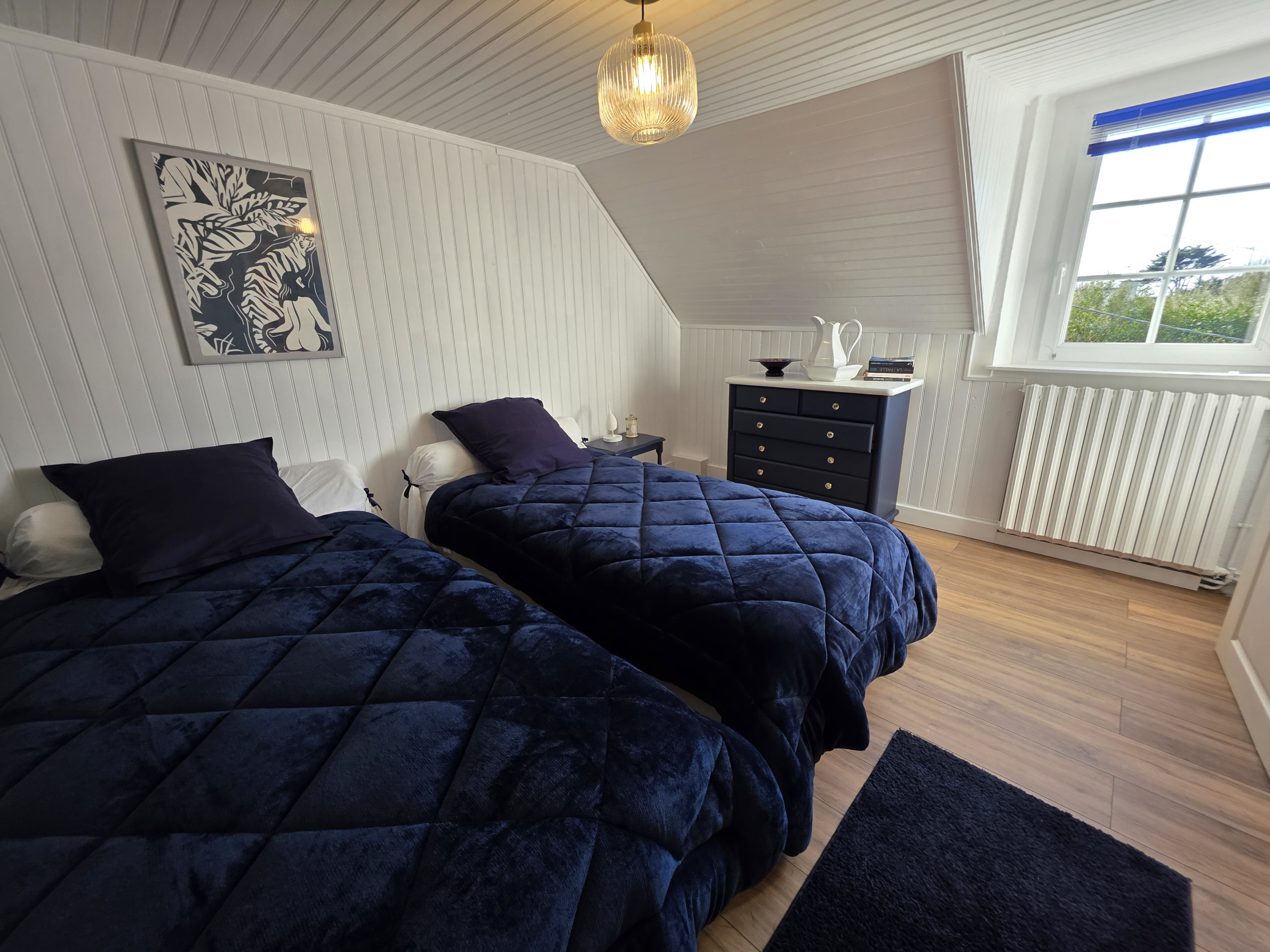 Upstairs, you will discover the sleeping area with its 2 other spacious bedrooms equipped with double beds and a 4th bedroom equipped with a single bed.
