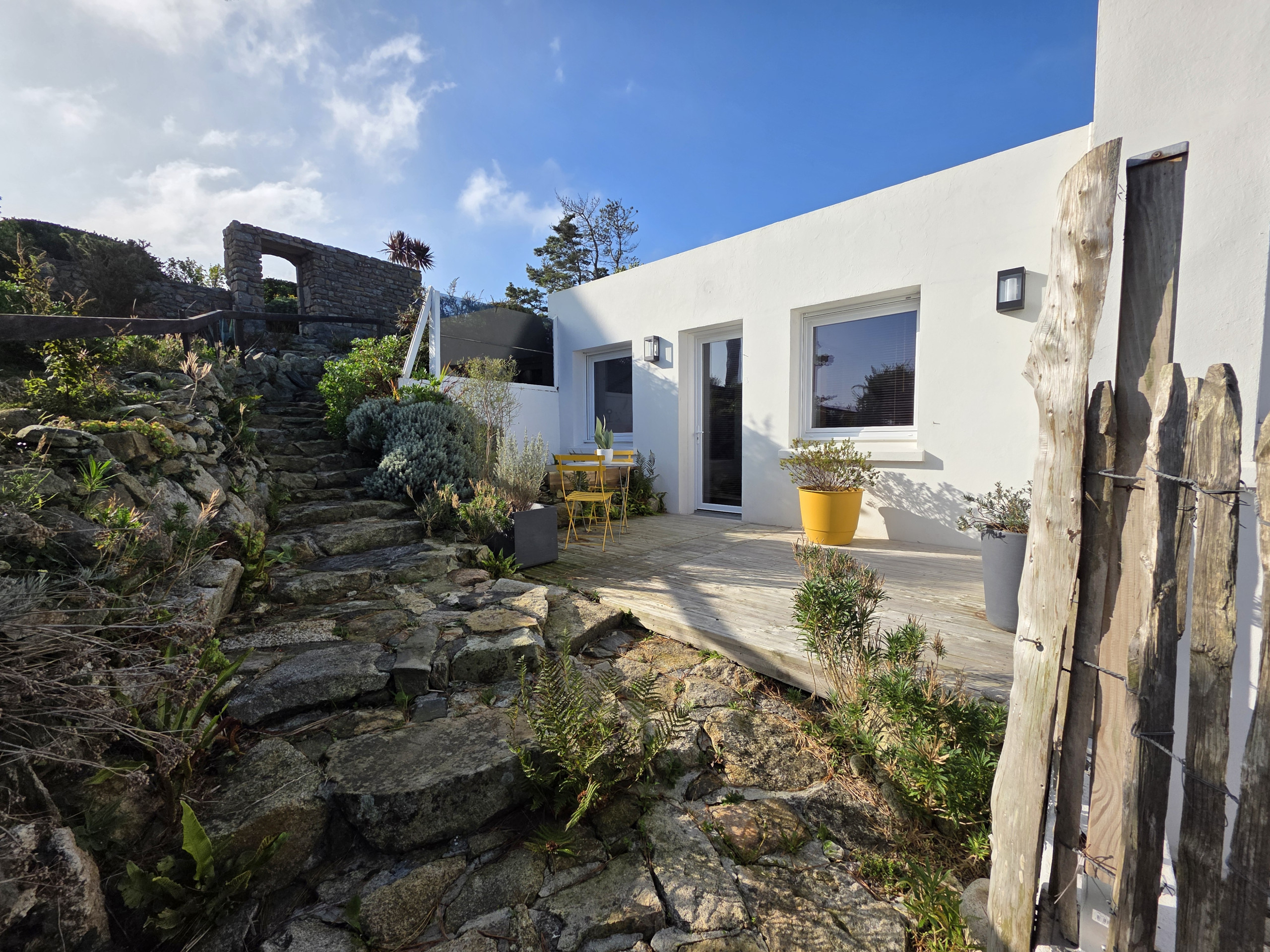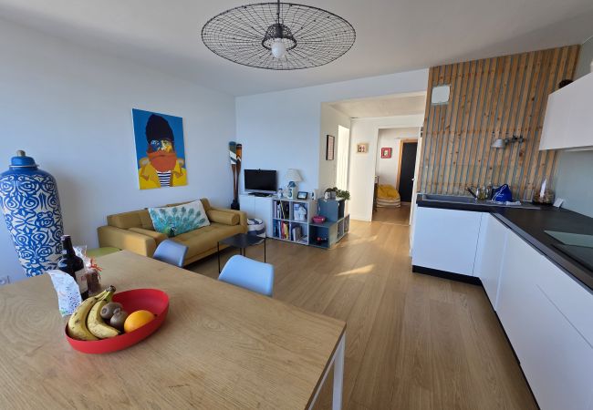 El residencial en Plouguerneau posee 2 dormitorio(s) y capacidad para 4 personas. Alojamiento de 55 m², situado en primera línea de playa, con vistas al mar y al jardín. Se encuentra a 0 m de la playa de roca, 1 km de la playa de arena "PLAGE DU VOUGOT", 4 km de la ciudad "BOURG DE PLOUGUERNEAU", 4 km del supermercado "INTERMARCHE PLOUGUERNEAU" y junto al mar. Dispone de jardín, mobiliario jardín, terraza, lavadora, plancha, acceso internet (wifi), secador, balcón, calefacción radiadores eléctricos, parking aire libre en mismo edificio, Televisión. La cocina americana, de inducción, está equipada con nevera, microondas, horno, congelador, lavavajillas, vajilla/cubertería, utensilios/cocina, cafetera, tostadora, hervidor de agua y exprimidor.