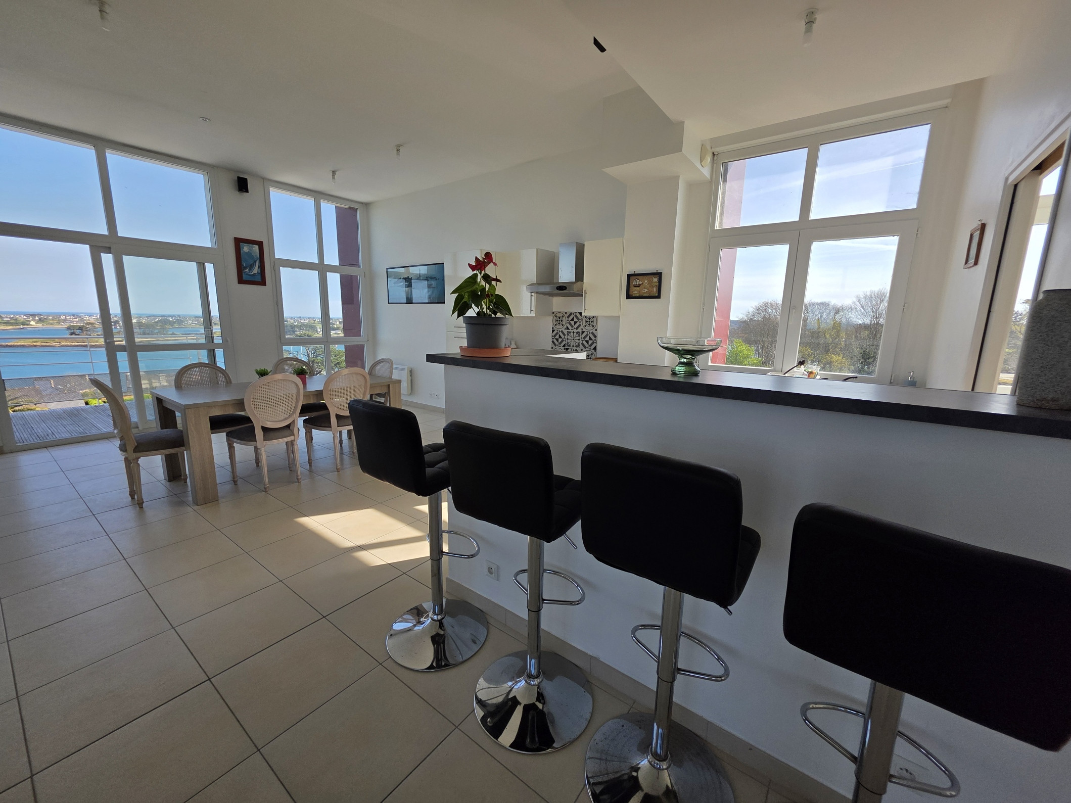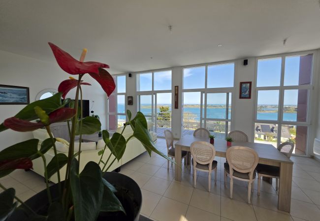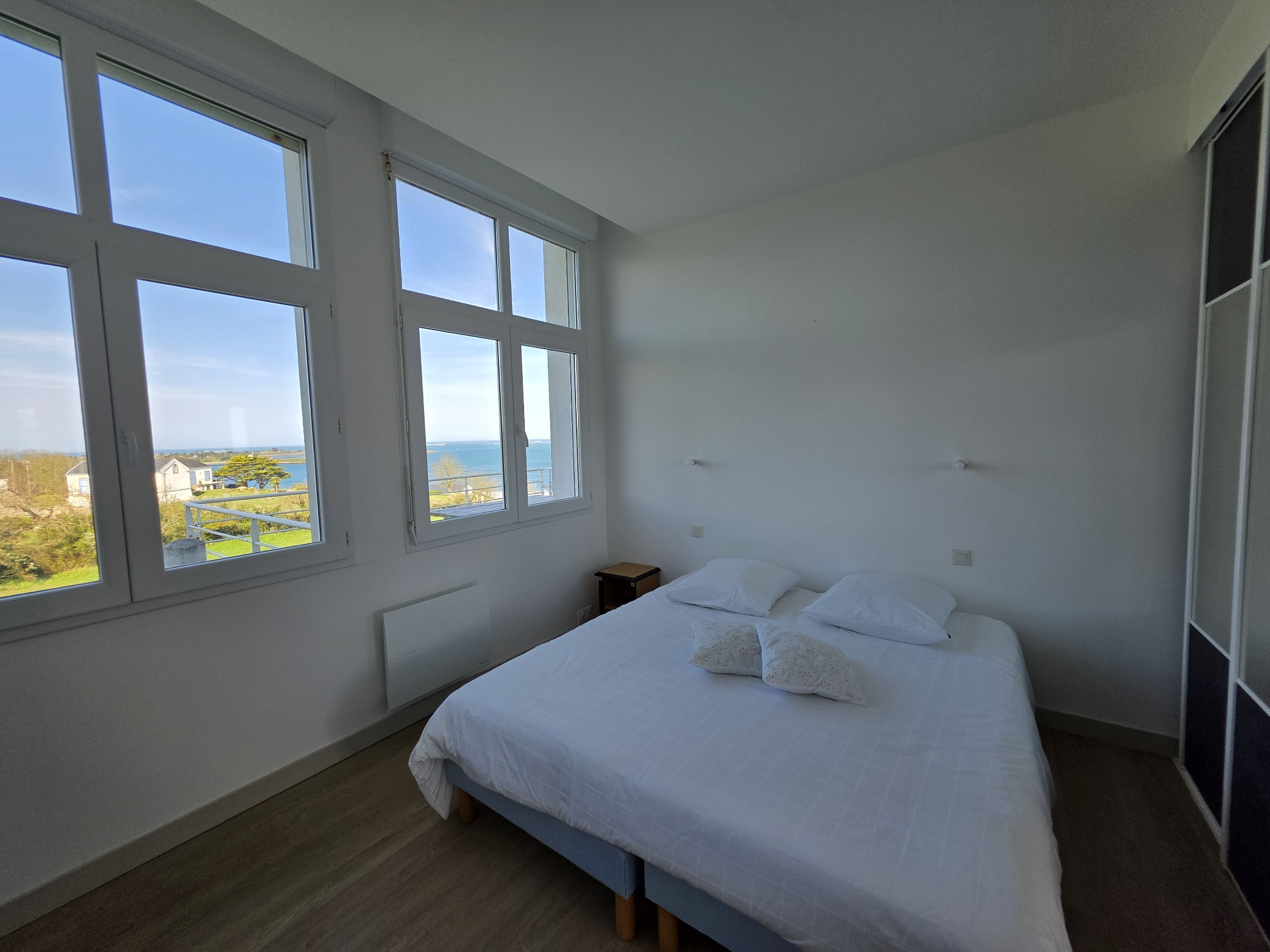 O apartamento em Landéda tem 3 quarto(s) e capacidade para 6 pessoa(s). Alojamento de 147 m² acolhedor e grande, localizado na primeira linha de praia, com vistas para o mar e marina desportiva. Encontra-se a 1 km da praia de areia "PLAGE DE LA BAIE DES ANGES", 2 km da cidade "BOURG DE LANDEDA", 2 km do supermercado "SUPERMARCHE UTILE", 20 km do aeroporto "AEROPORT DE GUIPAVAS", 25 km da estação de comboios "GARE DE BREST" e localizado numa zona encantadora zone e junto ao mar. Dispõe de elevador, mobiliário de jardim, terraço, máquina de lavar roupa, máquina de secar roupa, ferro de engomar, acesso internet (wifi), aquecimento com radiadores eléctricos, estacionamento ao ar livre no mesmo edifício, 1 Televisão, radio. A kitchenette, de inducção, está equipada com frigorífico, microondas, forno, congelador, máquina de lavar louça, louça/talheres, utensílios/cozinha, máquina de café, torradeira e jarro eléctrico.
